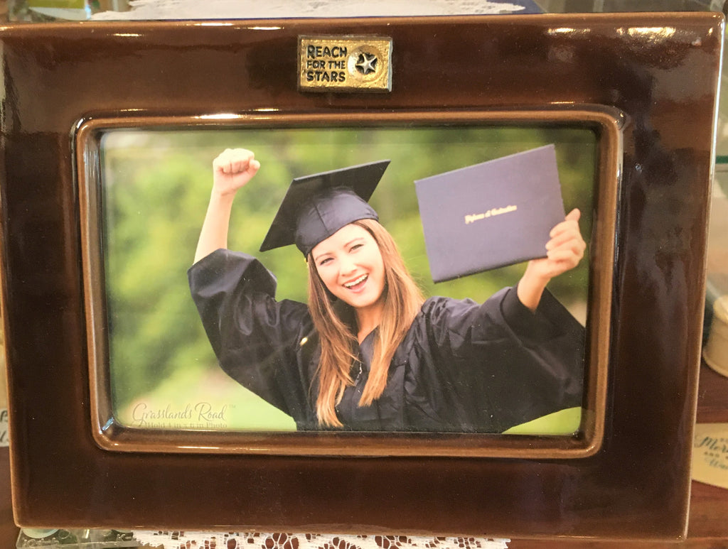 The frame is made of ceramic in brown for a 4 x 6 photo.